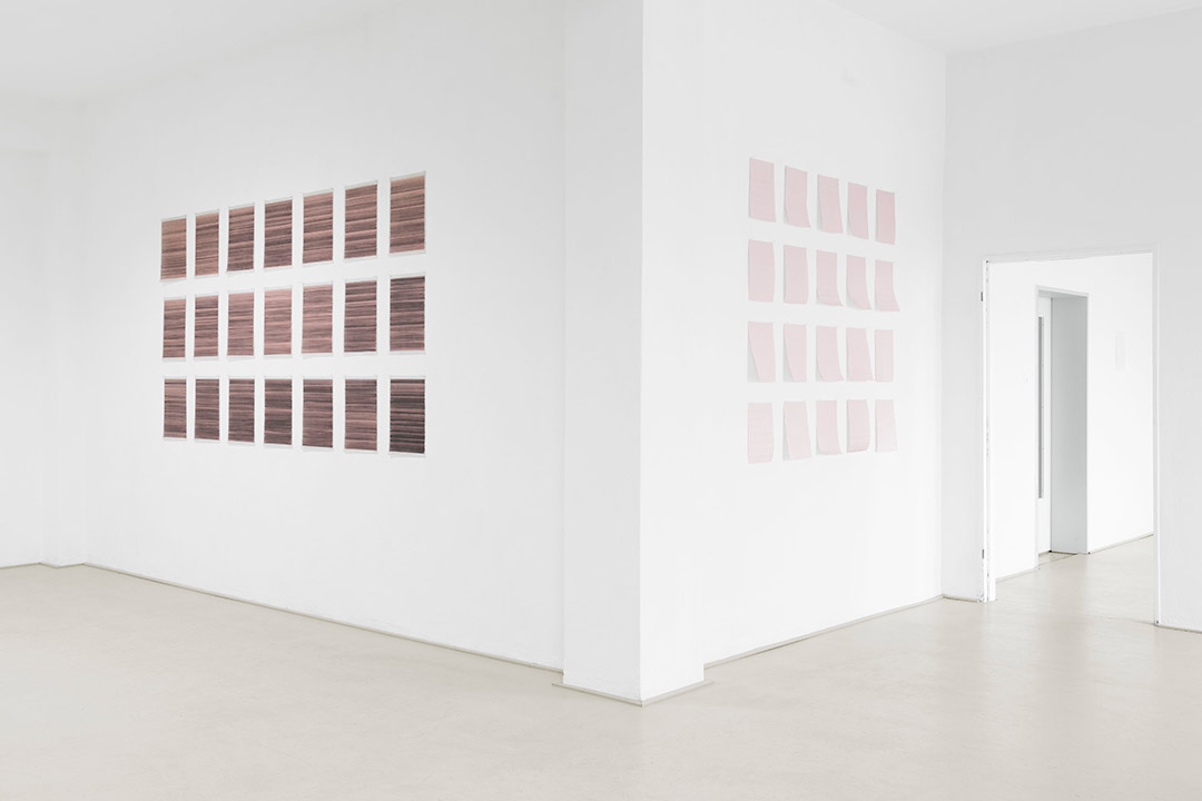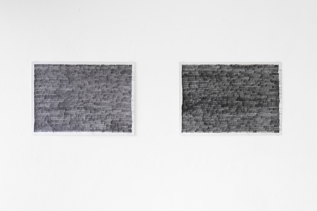 Die gezeigten Arbeiten sind eine Weiterführung der zeichnerischen Ansätze von Mari Lena Rapprich im Umgang mit Schreib- und Ordnungssystemen. Ihr forschendes Interesse gilt der Übersetzung von vorhandenen genormten Systemen in zeichnerische Prozesse. Dabei untersucht sie sowohl Papier als ordnungsgebendes Medium als auch den Prozess des Schreibens, mit all seinen Regeln und Strukturen sowie Abfolgen. Ein Lesen zwischen den Zeilen – das Graphit auf Papier, die Spuren des zeichnerischen Prozesses, die permanente Wiederholung, die Aneinanderreihung der Linien, das Aufgreifen vorhandener Formate, das Übersetzen von Strukturen, ein systematisches sich Abarbeiten, das festschreiben von Zeit, ein zeichnerischer Rhythmus.