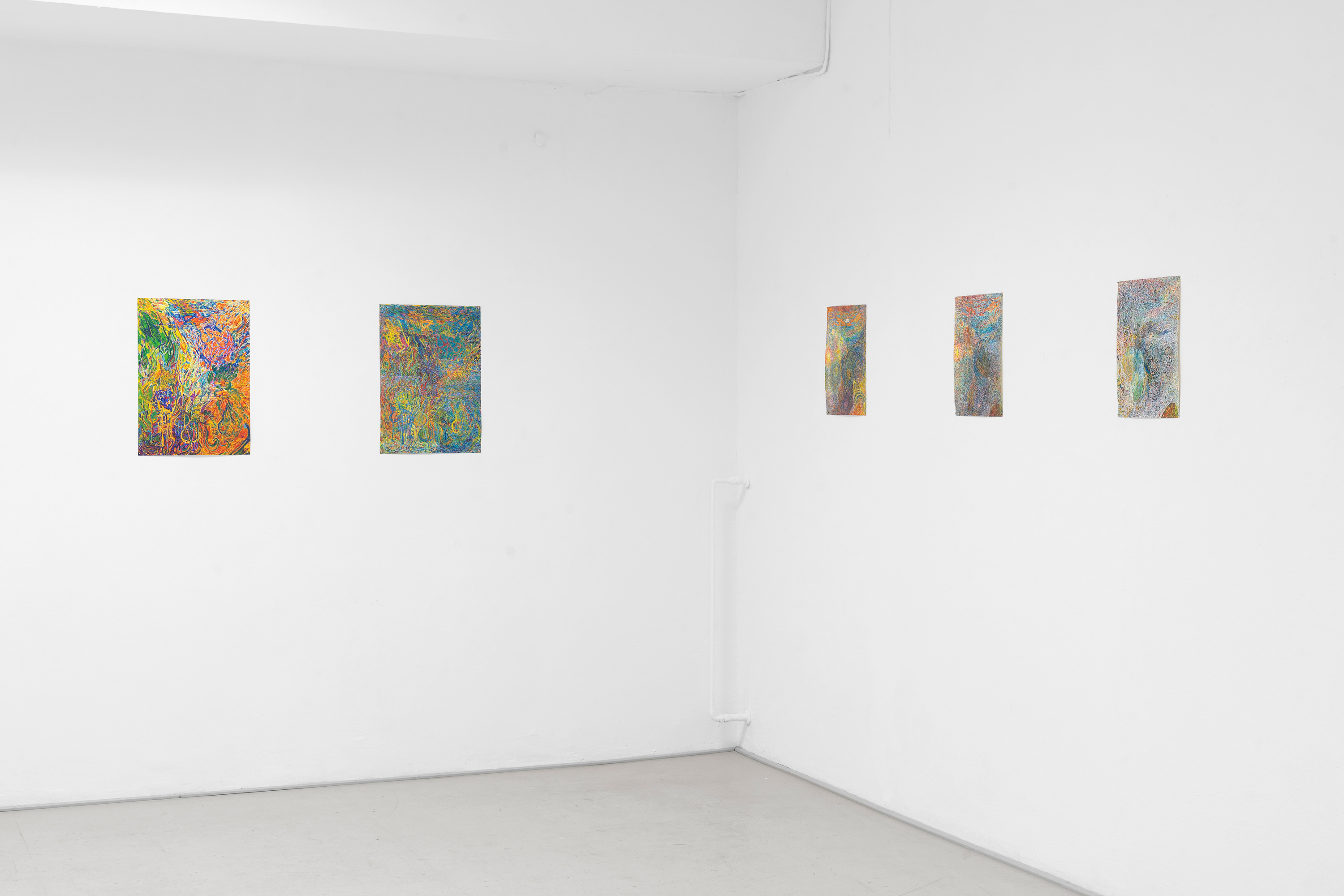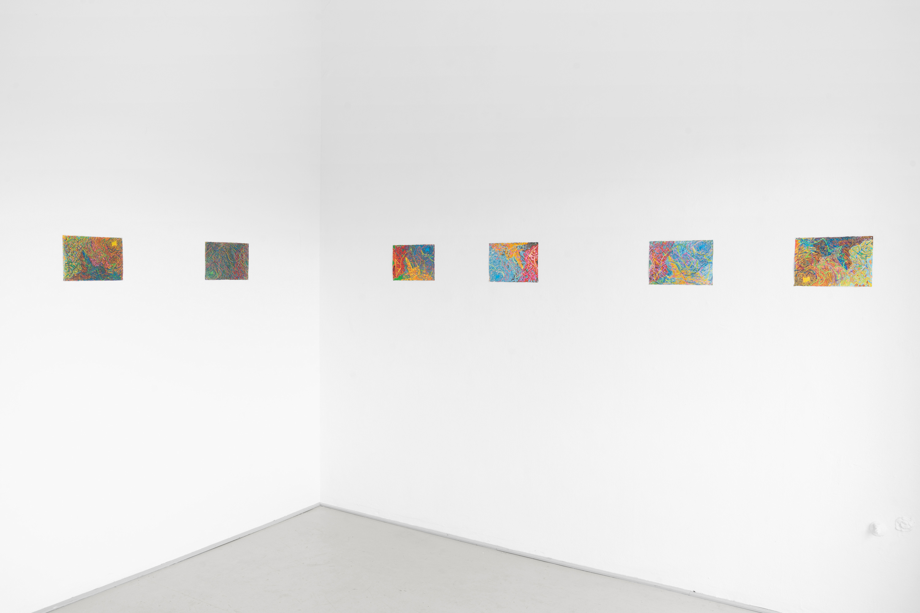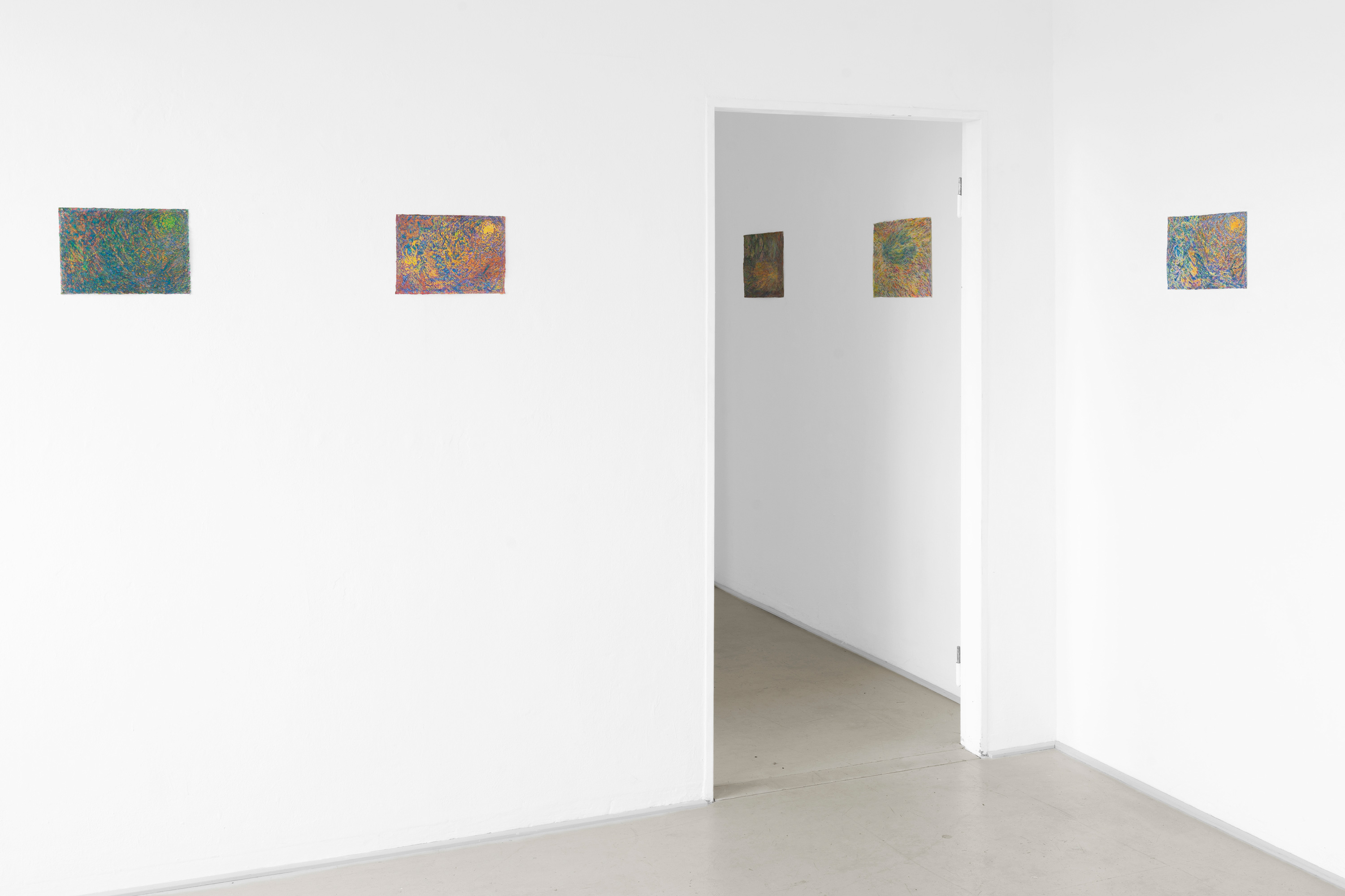 Während der fünfjährigen Zusammenarbeit von Kalbas und Teichmann entstanden mehrere Serien von farbigen Zeichnungen, in denen sich die Strukturen und Rhythmen auf unvorhersehbare Weise verändern. Die Blätter wurden während der Bearbeitung mehrmals ausgetauscht. Die organischen und ornamentalen Strukturen entwickelten sich so im Wachstumsprozess.