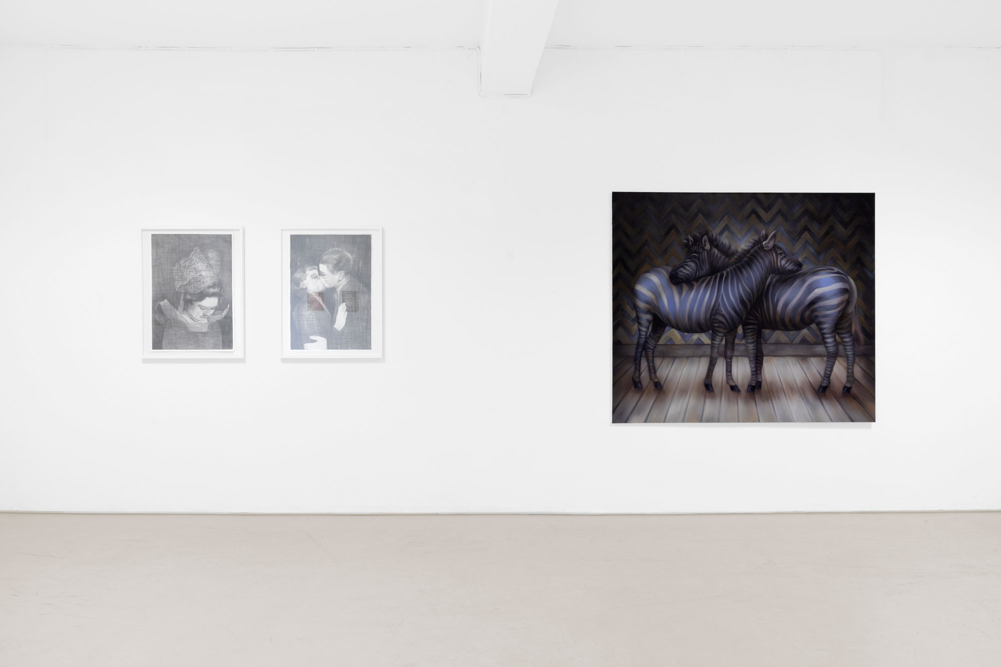 In ihren suggestiven Malereien und Zeichnungen zieht Simone Haack eine Art Parallelspur zur Realität. Ihr fiktives Bildpersonal, mal Mensch, mal Tier, siedelt sie in diffusen Räumen an und verwebt es in narrative Zusammenhänge, die jedoch unaufgelöst bleiben. Der Fokus liegt auf dem Ausdruck der Figuren, der im Spannungsfeld verschiedener Lesbarkeiten steht.