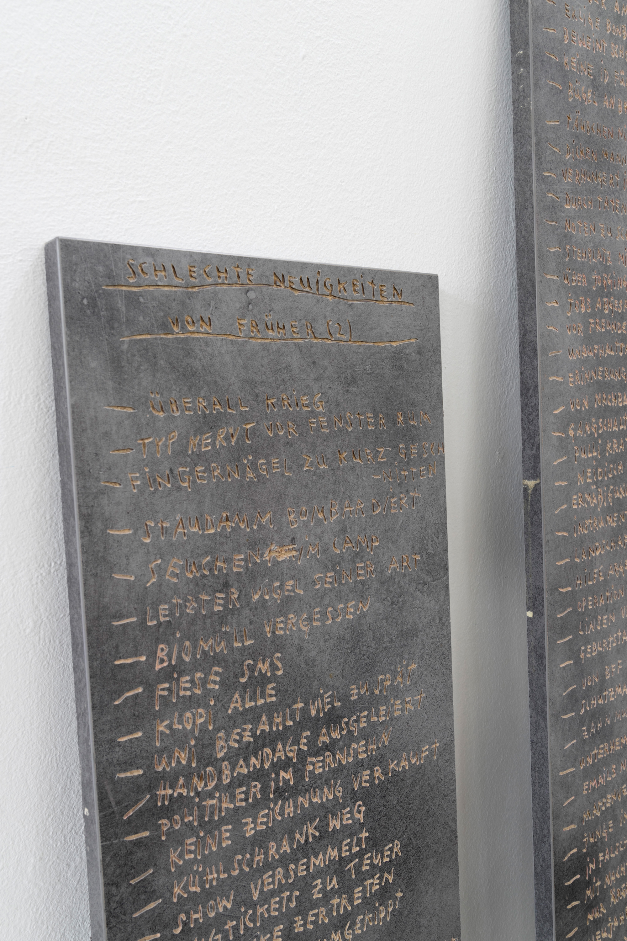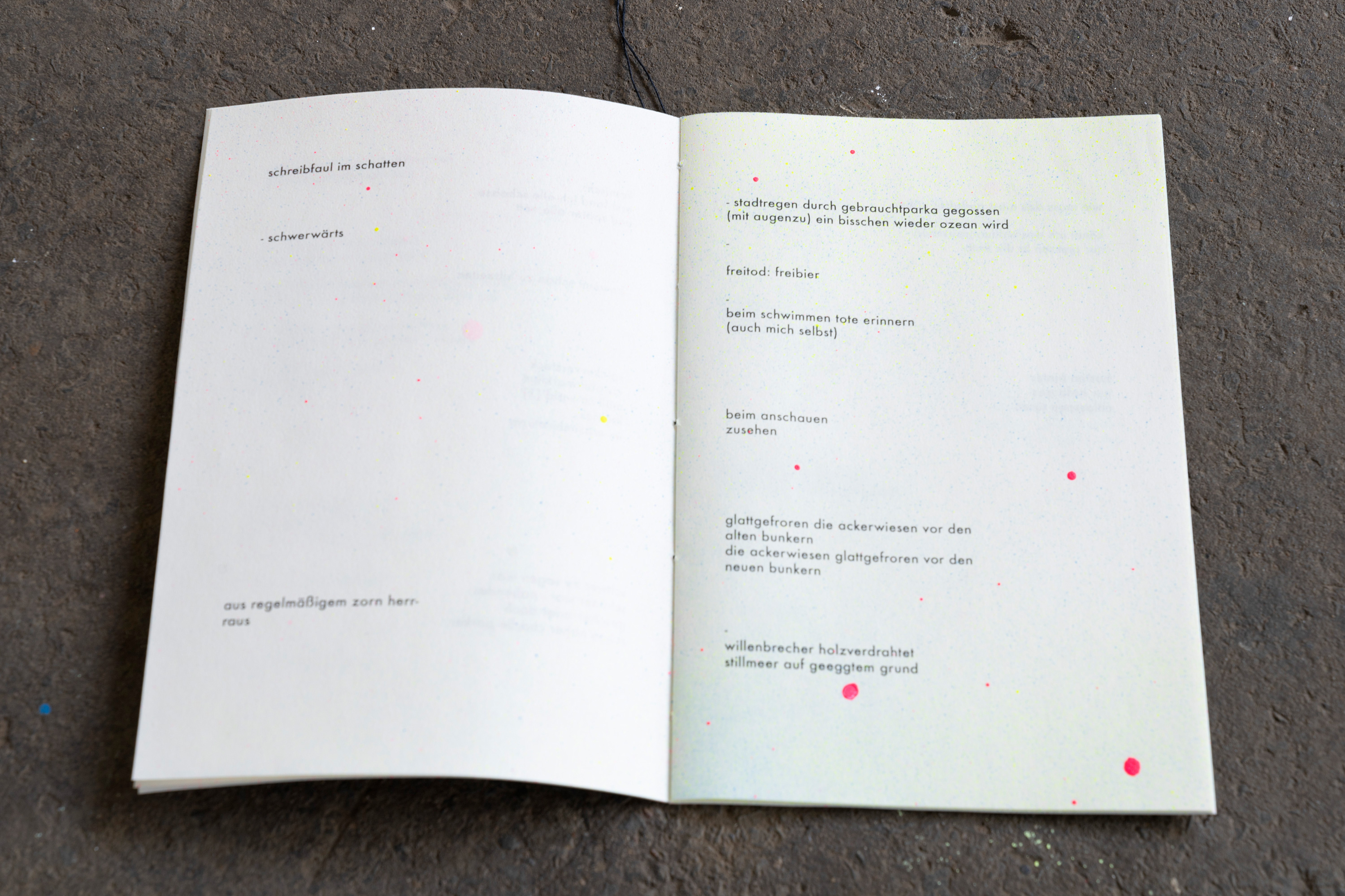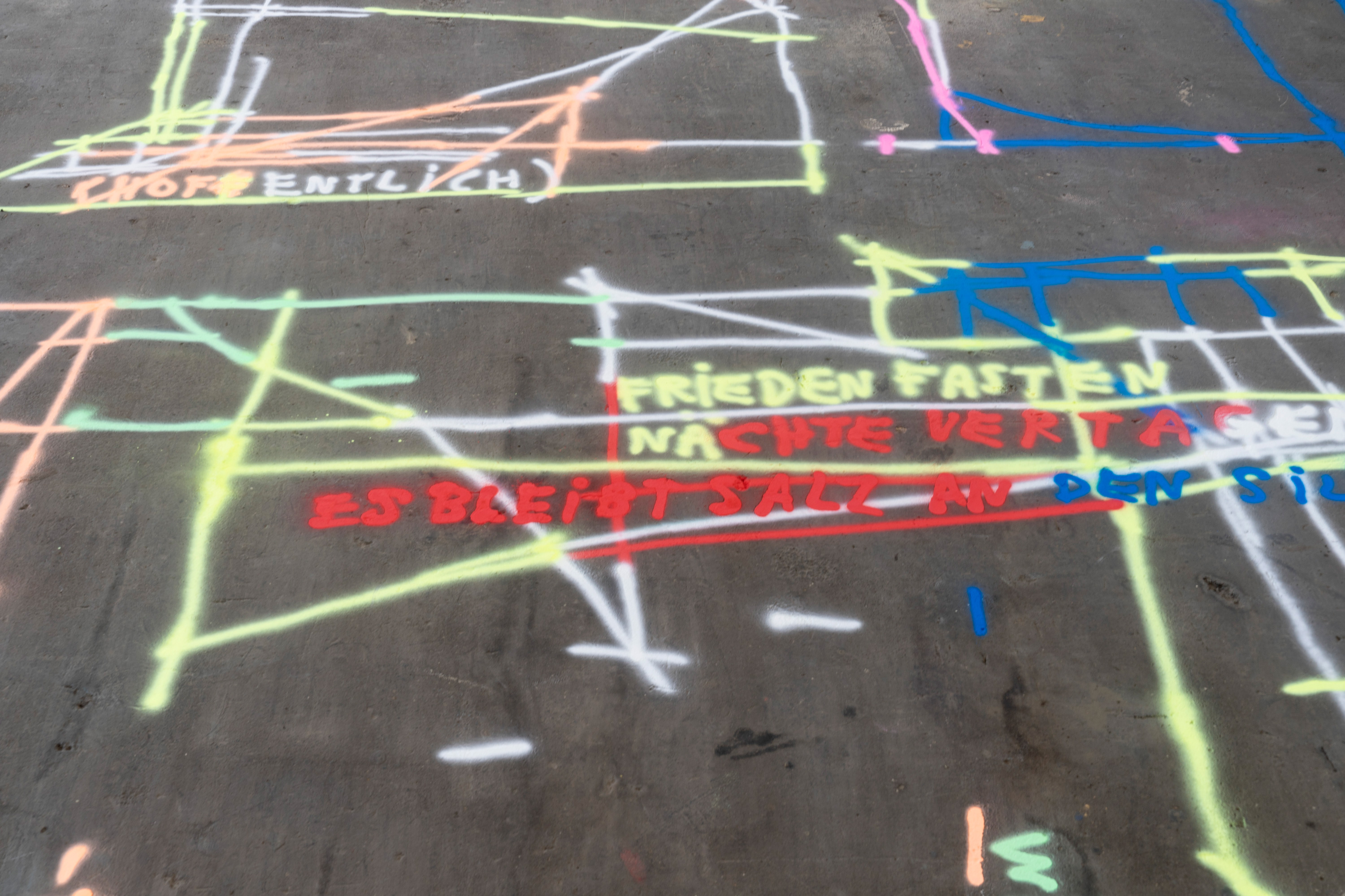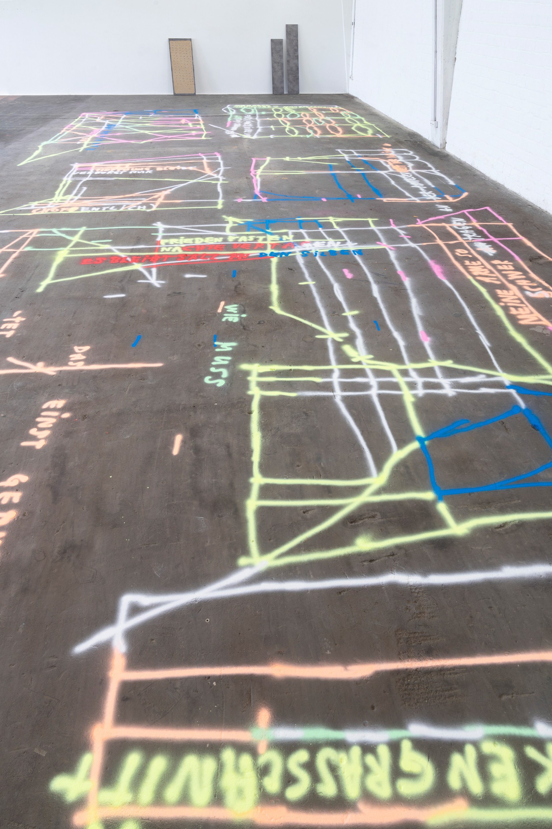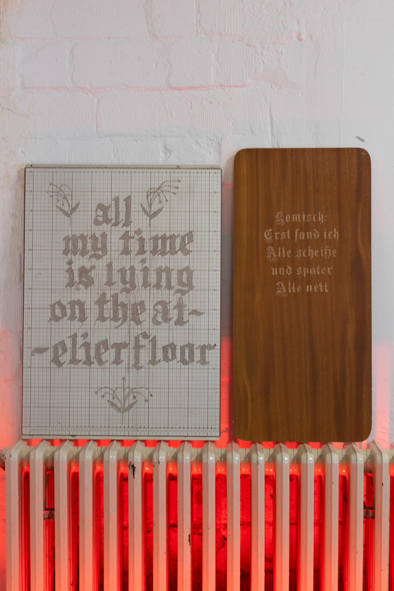 unter dem arbeitstitel ‚der versager kehrt heim (1)‘ malte ich mir aus, wie schön es wäre, mehrere jahre nach meinem weggehen aus bremen, einen raum zu füllen mit neuen worten und linien, eingewickelt in ein leises echo von damals, gewachsen, gealtert, erkrankt und leichter gleichermaßen. ‚totraum‘ beschreibt einen durchgangsbereich, der eine notwendige unnutzbarkeit umarmt. die ausstellung versucht eine atmosphäre zu teilen, die mich die letzte dekade täglich beschäftigt, sterben, erinnern, flughafer schwer an schönheit sich trägt.