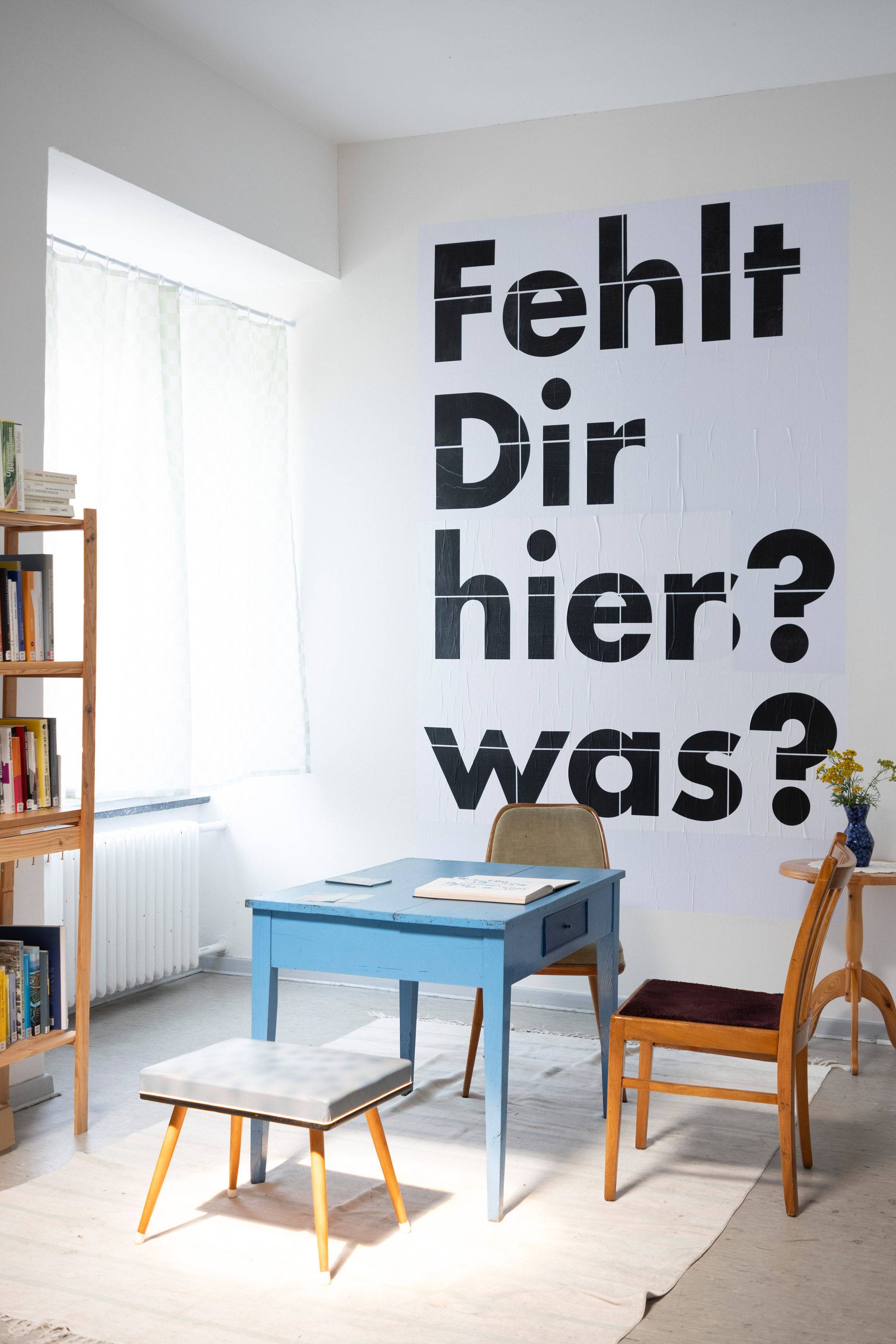 In der Galerie Herold treffen sie auf die Arbeit Kleister Pt. 2 der Gestalterin Franzi Bauer, die gemeinsam mit Studierenden der Universität Bremen klassismuskritische Fragen im Ausstellungskontext entwickelt.